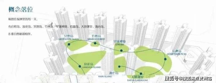 精心布局启程岛、浪花岛、冥想岛、竹林岛、旱溪禅境、拾趣岛、大地课堂、逸心岛 8大主题园林