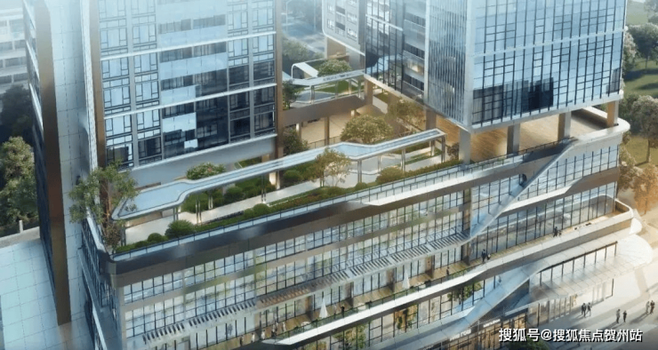活力复合连廊天花采用夹胶钢化玻璃材质,芝麻灰花岗岩铺地,将瑜伽室和健身空间有机结合,既有绿色栈道的美感,也起到了风雨连廊的作用,串联起空中花园与楼栋的入户大堂,不管是暴晒还是雨天,业主们都能休憩观景,亦能从容归家。