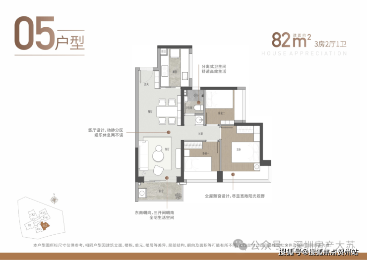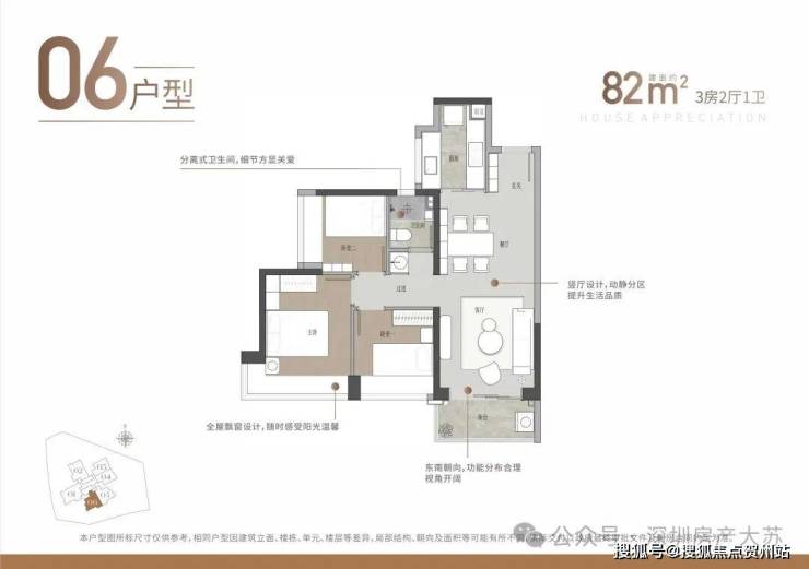 82平3房2厅1卫 359万-390万