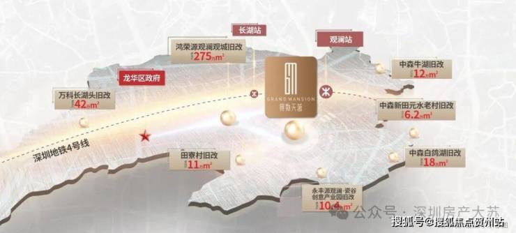 本案一路之隔约275万㎡鸿荣源综合大城旧改,未来超2000万㎡城市更新体量,汇集卓越、华润、鸿荣源等品牌房企,将为片区带来新的活力,升级居住品质和城市面貌,带动片区居住人群圈层的提升,推动观澜发展,区域价值腾飞