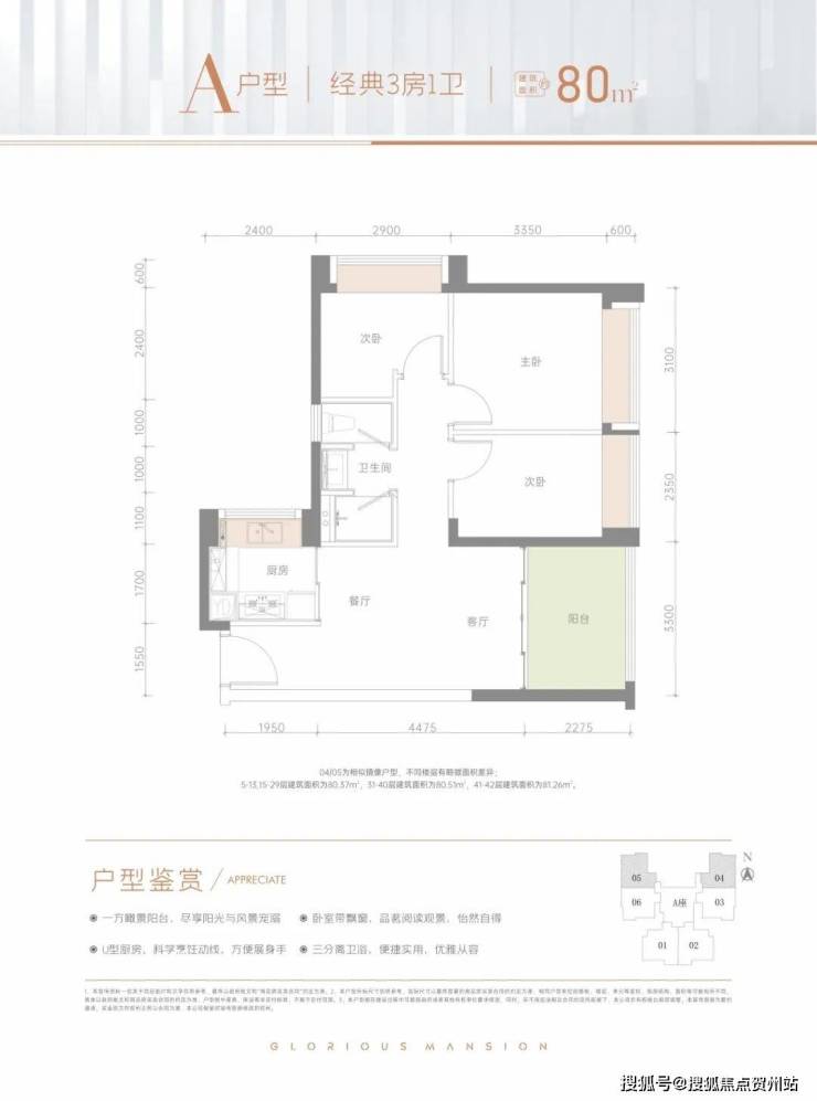 建面约80㎡经典3房1卫