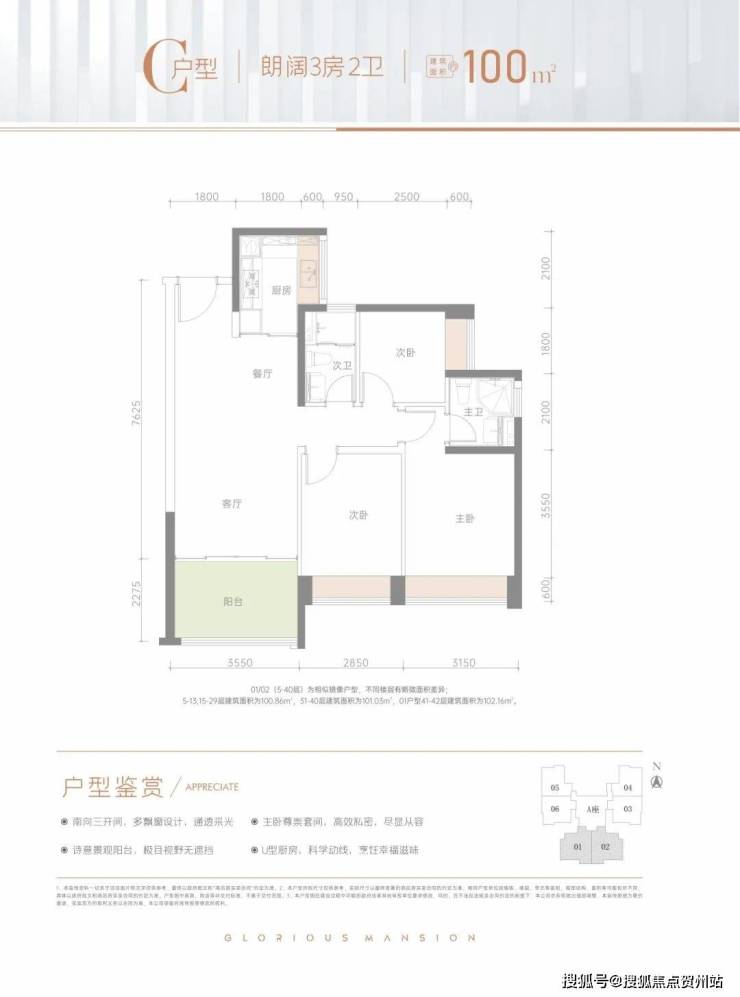 产品户型:约64-100㎡2-3房
