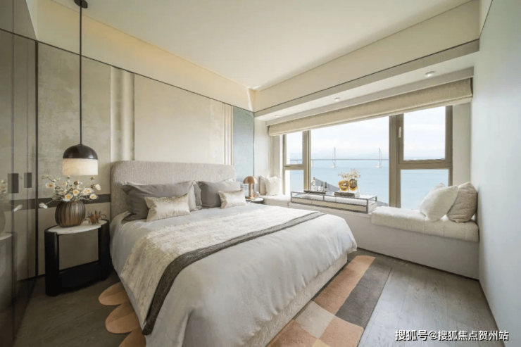主卧270°环幕设计,港珠澳大桥、伶仃洋海景尽收眼底,窗景价值堪比香港半山豪宅;