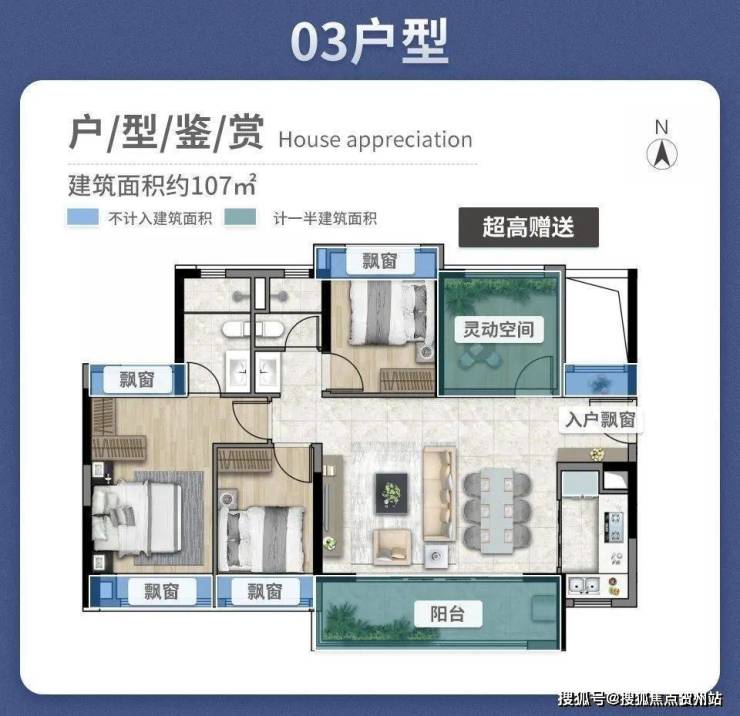 建面约89㎡2+1(多功能房)房2厅2卫,为竖厅朝南设计,约3.5米开间餐客通厅,连通约1.75米进深景观阳台,动静分离, 公卫同为三分离,主卧带套间。