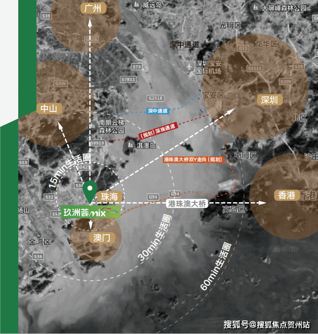 • “海陆空轨”四维一体交通网覆盖,3口岸1桥、5大城际枢纽、5大机场,瞬达湾区各地,通联全国,同频全球;3口岸,咫尺即达拱北/青茂/港珠澳3大口岸,10分钟澳门;粤港澳大湾区超级交通枢纽。1大桥,3km接驳港澳珠澳大桥,通过港珠澳大桥40分钟直达香港。