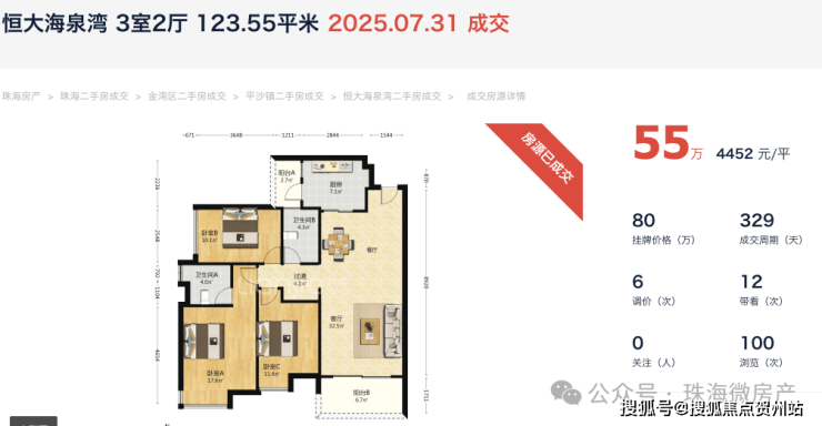 还有同位置的恒大海泉湾4452元/平,就能拿下123平的3房单位。