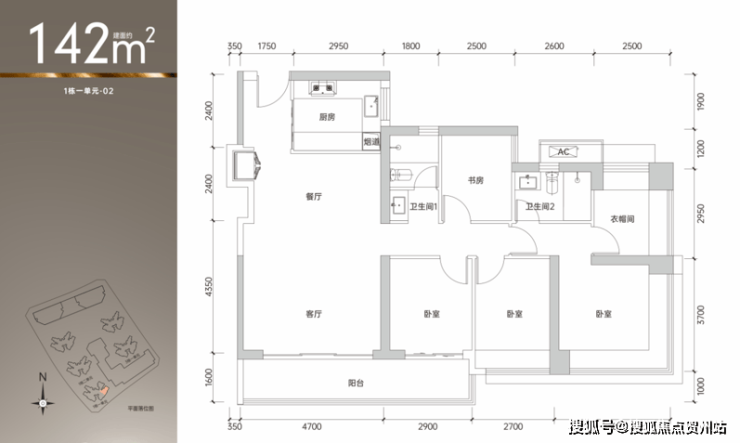 01户型99㎡:总价351-366万;02户型142㎡:总价624-648万