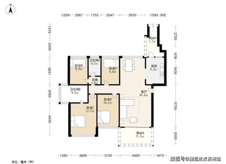 六栋01、02户型——建面约170㎡4房2厅2卫