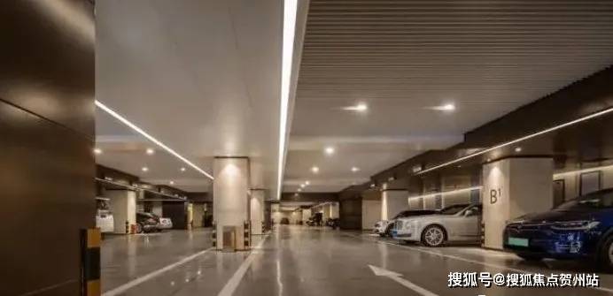 车库色调主要以香槟色为主,通过对行车通道与停车区域的色彩对比处理室内空间关系;