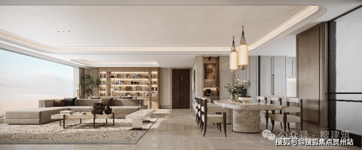 瑞玺打造先锋超流体立面,向自然借灵感,以“超流体曲线”立面回应江水韵律。金镂玉面质感+环幕全景舱设计,远远望去就像通透的“玻璃盒”,莱姆石与全玻璃幕墙搭配,既实现约360°无界观景,又让建筑成为城市天际线的亮眼风景,注入宁静、流动与包容的生命力。