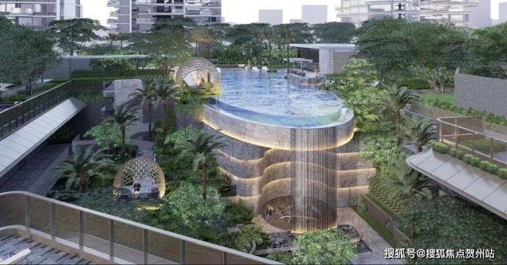 配套紧700方超大空中会客无边际泳池,高空无界度假观感。