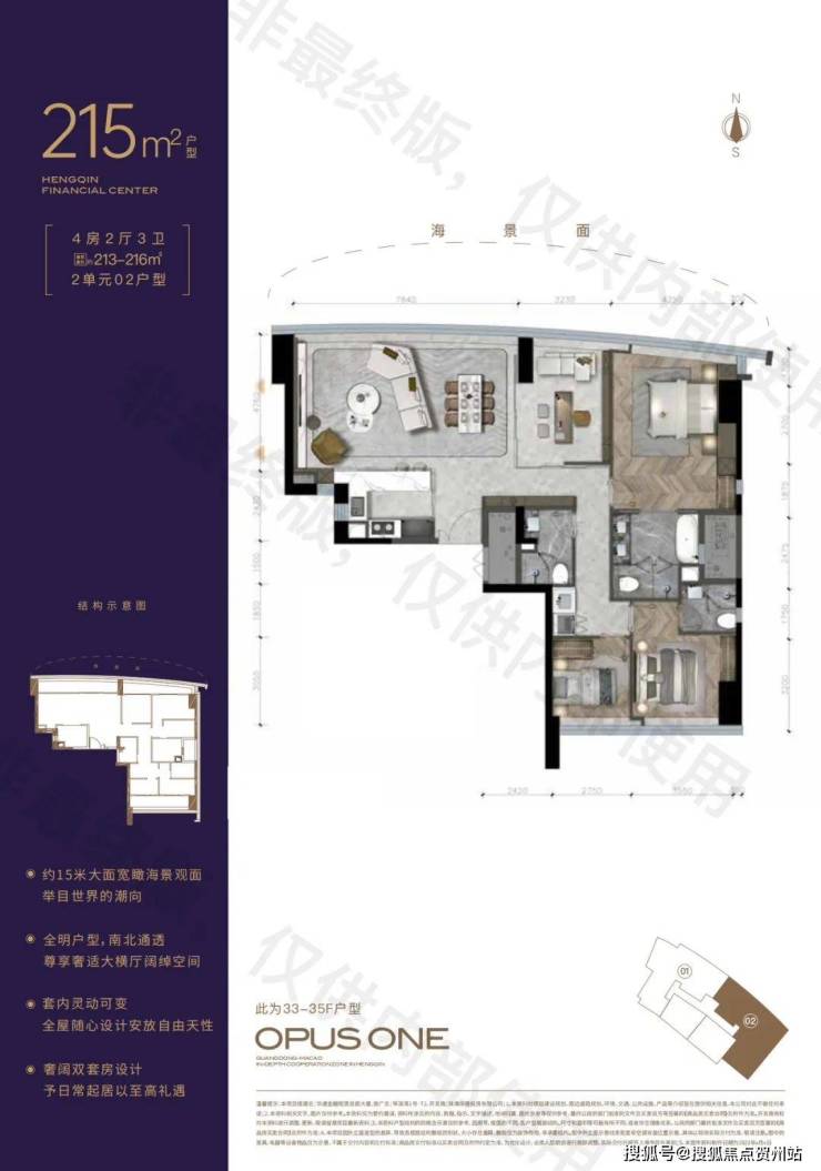 项目由全球大师天团——Aedas凯达环球、CCD郑中设计事务所、ASL阿特森联手设计,带来建面约78-215㎡瞰海美宅,满足购房者不同的买房需求。
