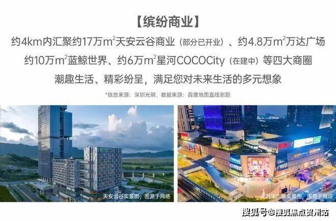 商业配套:项目自带约3500㎡商业,4km内汇聚约17万㎡天安云谷商业(部分已开业)、约4.8万㎡万达广场约10万㎡蓝鲸世界、约6万㎡星河COCOCity(在建中)等四大商圈。