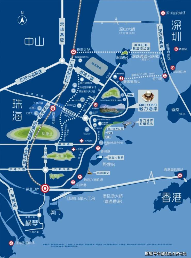 格力海岸所在的唐家湾,地理位置得天独厚,占定三大自贸区几何中心(深圳前海自贸区、广州南沙自贸区、珠海横琴自贸区)。且以大桥未支点效应,多维交通路网向外延展:港珠澳大桥、深中大桥(建设中,预计2024年通车)、金琴快线、兴业快线(建设中)、唐家港码头(计划开通到蛇口新航线)、广州地铁18号线延长线(规划中)...,未来将形成大湾区一小时生活圈,接轨世界前沿。