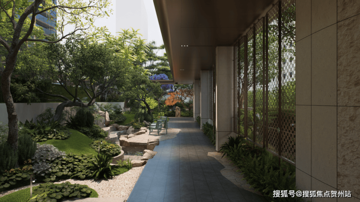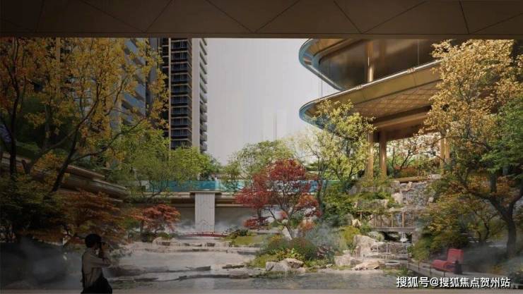 为此,锦和玉鸣摒弃了其他项目华而不实的空旷草坪设计,通过不同模式的植被组合,打造出15米高差、约700㎡的下沉庭院,山石林泉融为一体,营造出楼下即是亭台楼阁的园林盛景。