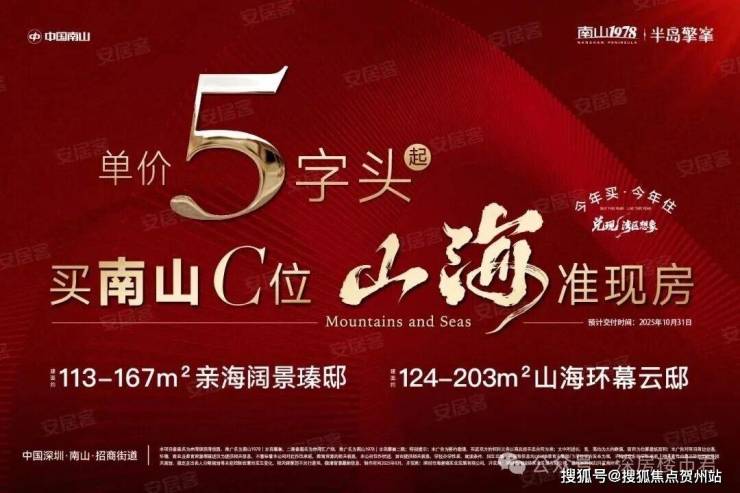 南山C位山海现房,建面约113-203㎡3-5房,山海环幕云邸。