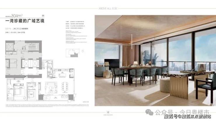 公寓主力户型为304㎡、327㎡、402㎡、570㎡以及1032㎡,公寓层高3.6米,低区5T3,高区5T2。
