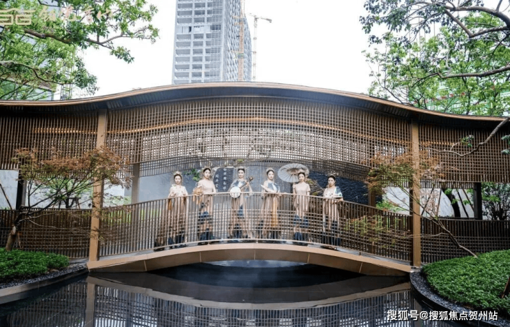 项目摒弃市面常见的围合式布局,以《千里江山图》的意境与岭南四大名园的风雅为底蕴,营筑立体化岭南园林。