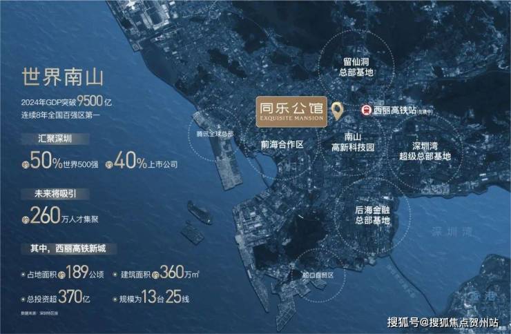 项目周边聚集深圳头部产业资源:西侧为科技园(腾讯、大疆等科技企业总部),东接前海金融中心,南靠蛇口自贸区,北邻留仙洞战略性新兴产业总部基地。区域内以高新技术、金融、总部经济为主导,吸引大量科技从业者及金融精英,形成高净值人群聚集效应。同乐片区未来或承接南山产业外溢,成为职住平衡的重要节点。