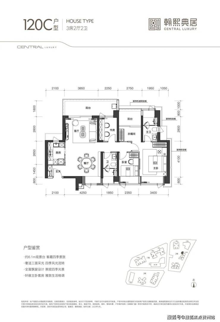 主力户型:105㎡3房2卫、120㎡3+1房2卫、140㎡3+1房2卫。