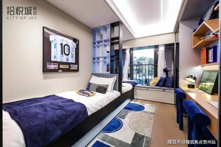 而拾悦城楠园敢于突破常规,既保证了主卧的阔绰空间,也让次卧有足够的尺度满足两个孩子休息、学习、玩乐等需求。