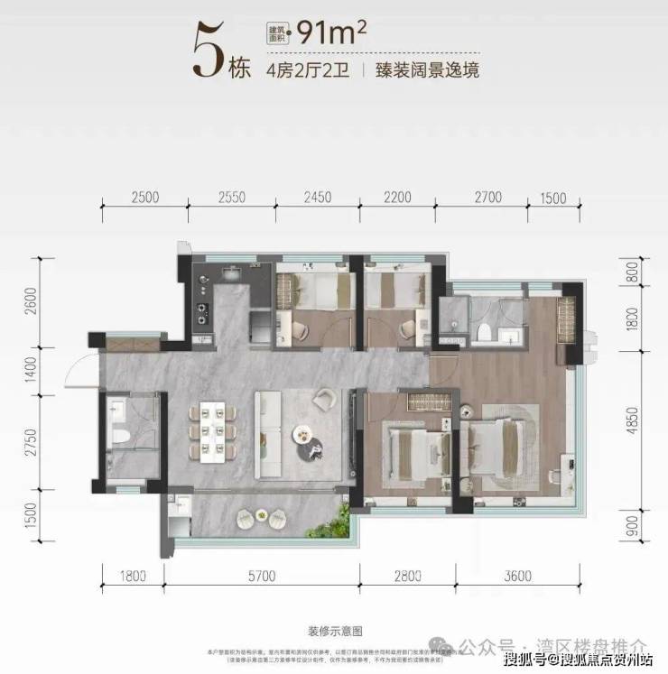 ◎5栋01房【约91㎡四房两卫】