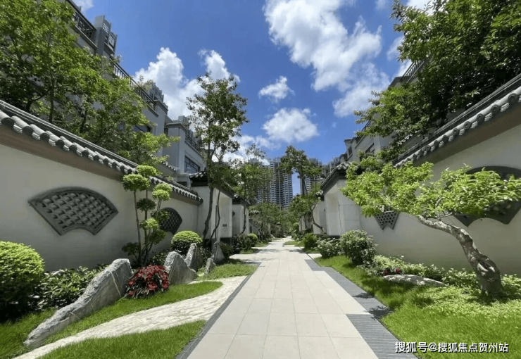 建筑风格:新东方主义立面设计,融合中式园林景观,社区内移植百年古树提升环境品质