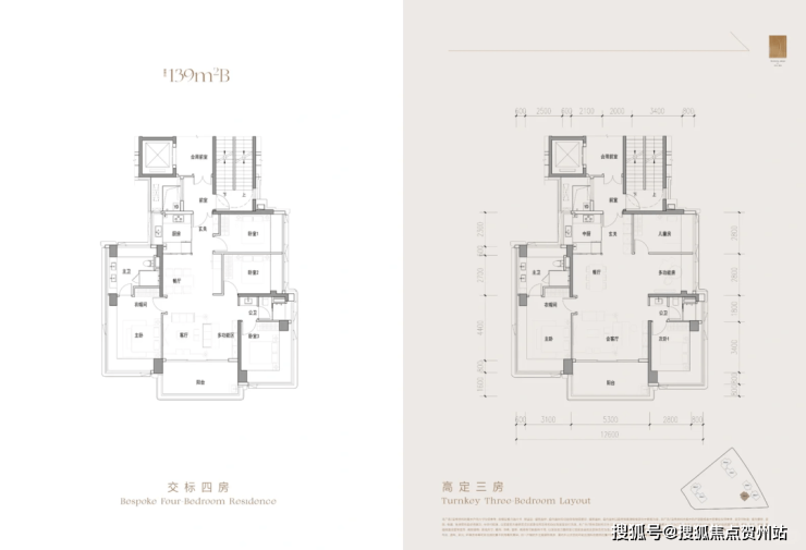 139㎡四房两厅两卫:位于3栋,提供A(竖厅南北通透)、B(双龙抱珠)两种格局。四开间朝南设计,主卧配备270°无柱转角飘窗。由SCD团队打造,提供“风尚米”和“经典灰”两种装修风格,可定制为高配版三房。
