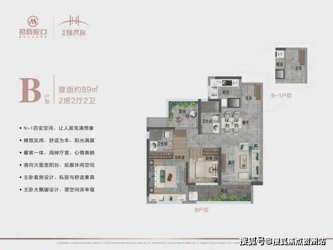 灵活户型设计:79㎡2+1房、89㎡2+1房,105㎡3+1房、119㎡4房,满足单身、三口之家到三代同堂的全生命周期需求。