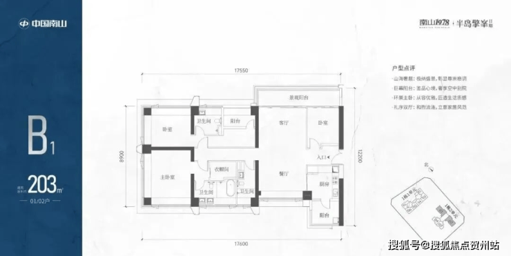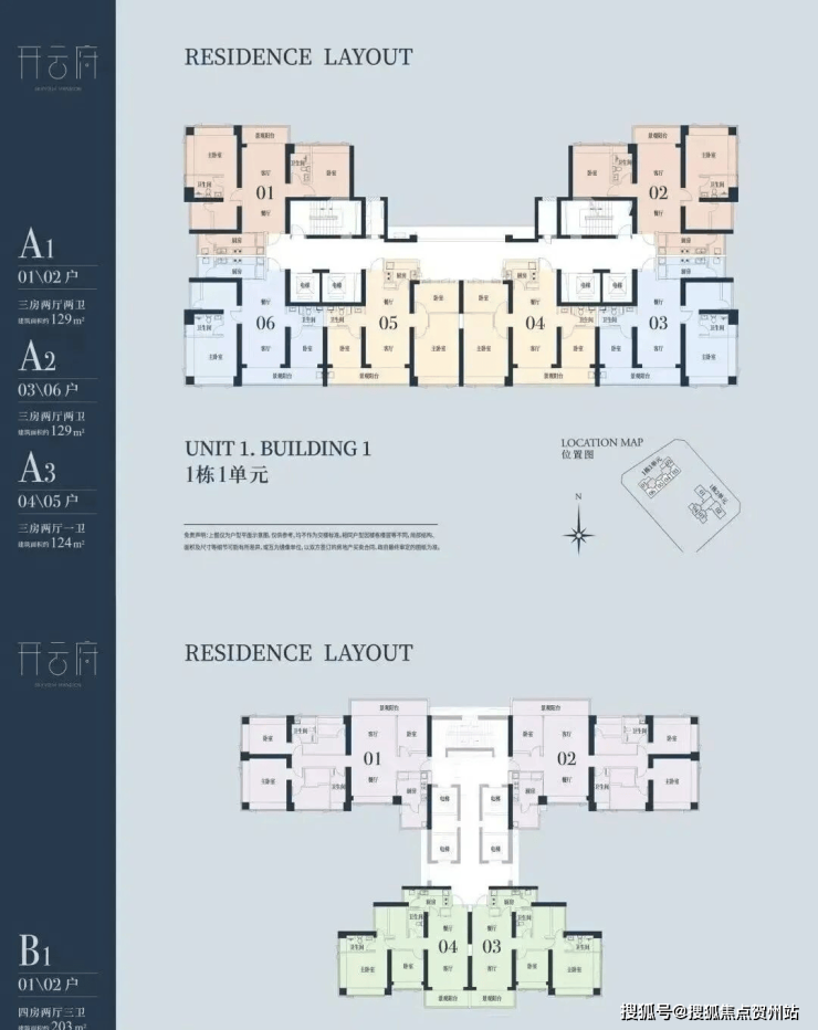 A1有两条腿,分别1-1栋01/02,主朝向是西北向,双龙抱珠格局。