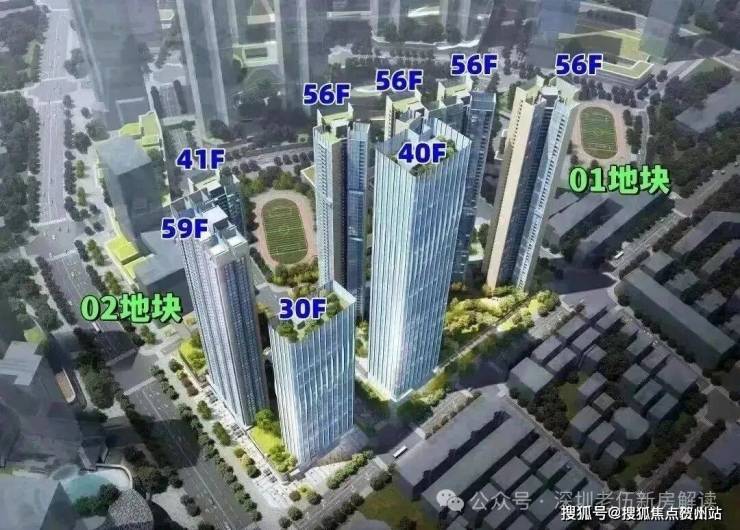 01-01地块占地约1.93万平方米,总建筑面积约23.8万平方米,容积率为8.81,绿化率为40.01%。该地块由1栋40层的办公单元和4栋56层的住宅单元,还规划有公交首末站。地块总规划980户,住宅单元设计为3梯4户、3梯5户和3梯6户,规划停车位1533个。