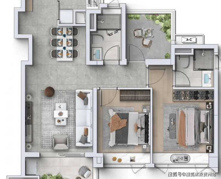 (3)主卧L型双面采光,江景视野更开阔