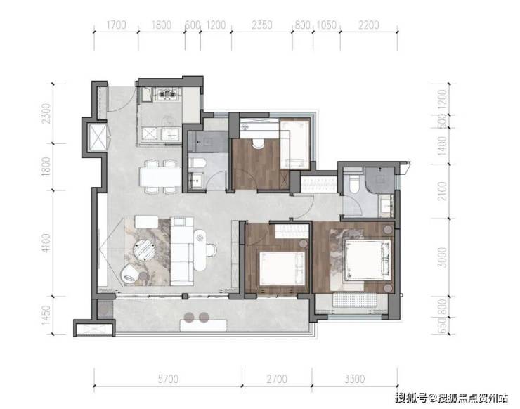 客厅开间约5.7米,媲美高端户型尺度;