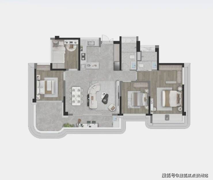 室内跑道级阳台、LDKBG方厅、270°环幕景观等豪宅大平层才有的配置,在这里不过是“标配”。
