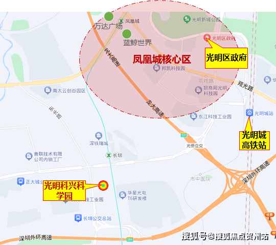 紧邻光明凤凰城核心区;