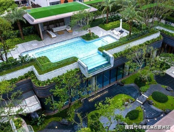 约95㎡悬挑户外景观池,采用无边际透明景观池设计,将池水与远处将军山天际线相连,形成“水天相接”的视觉奇观,远望山景,亦可270°俯瞰立体园林。