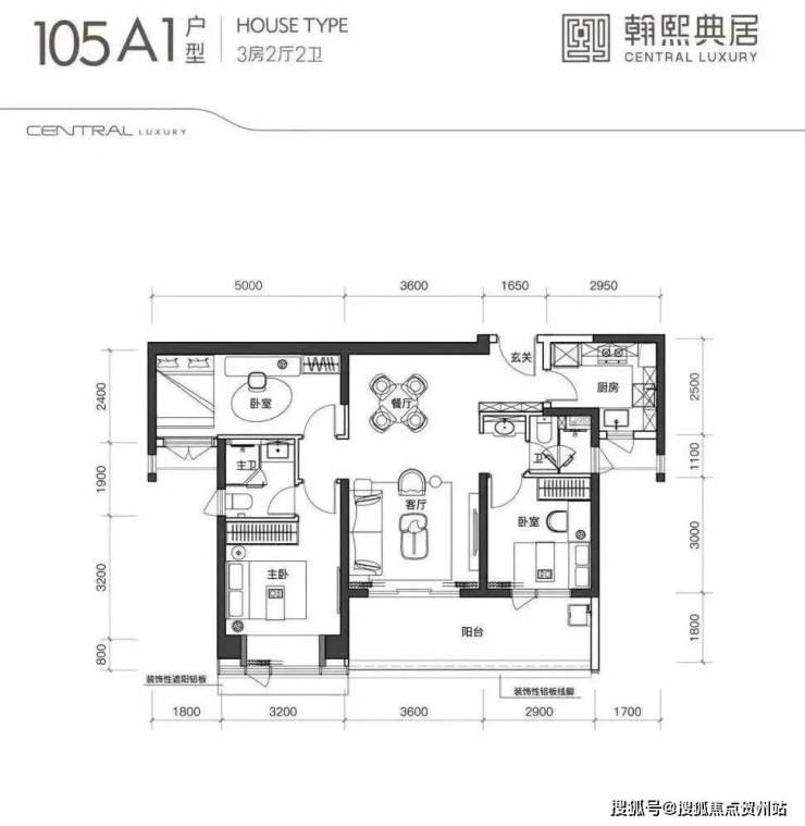 建面约105㎡的3房2厅2卫