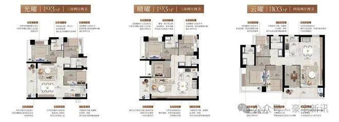 新规下的实用革新:建面约93-130㎡全南向三至四房,约90%得房率,同等面积多一房。
