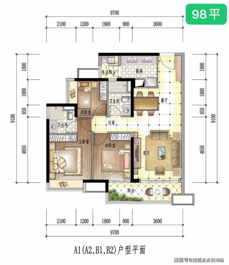 【洋房户型】三期高层98-172㎡三至四房;