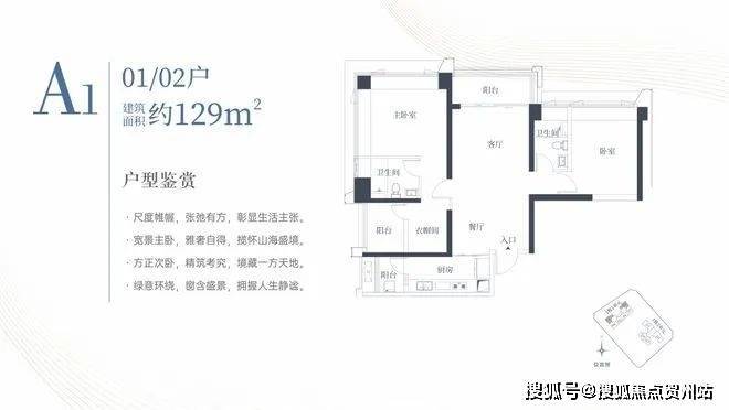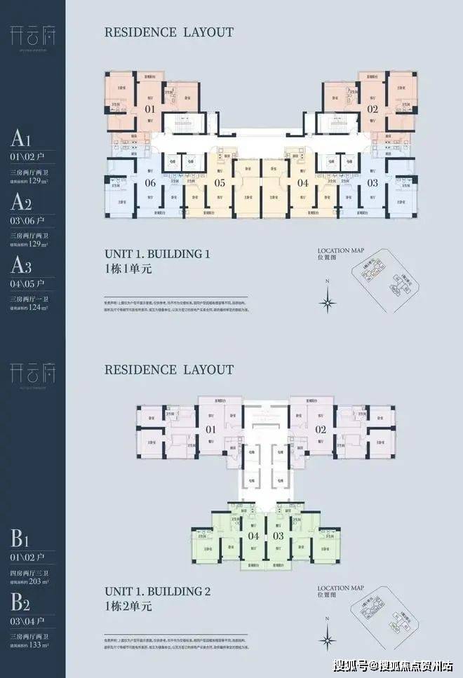1栋一单元A1、A2户型:面积约为129㎡