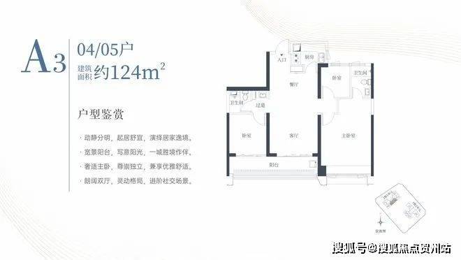 1栋一单元A3户型:面积约为124㎡