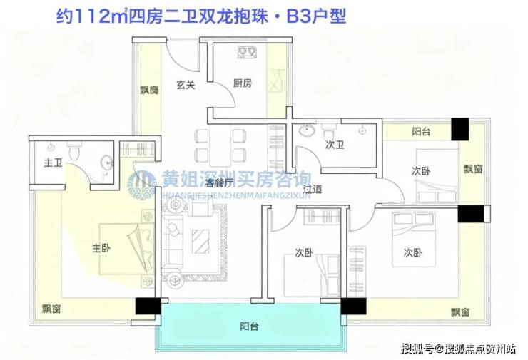 项目规划为纯四房产品,户型面积约105-188㎡,全部为精装修交付。