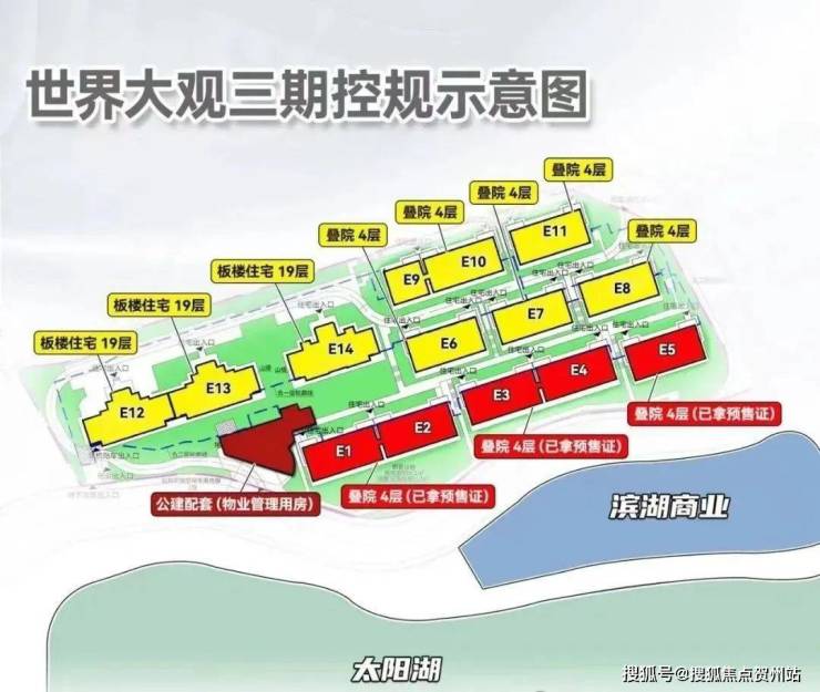 整体容积率低至 1.6,南望约 3.3 万㎡太阳湖,与湖最近直线距离仅约 40米。