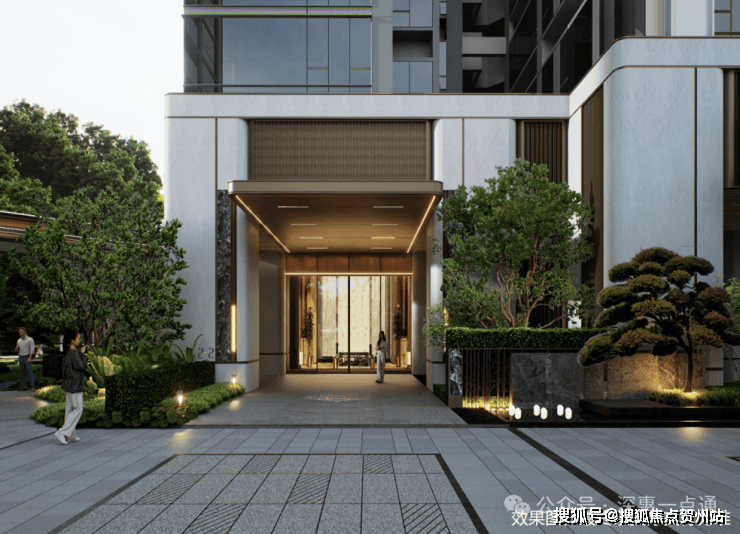 五进水景迎宾,石材景墙、艺术水景与小叶紫檀组景,每一步皆是礼遇;