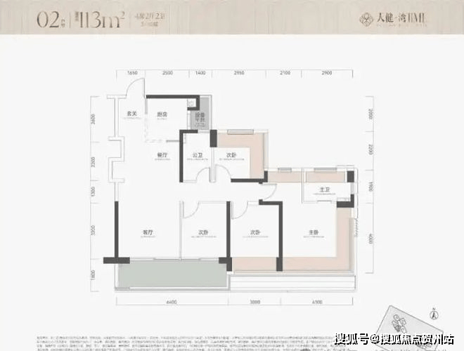 产品打造上,项目规划建设 2 栋 100 米内的 31 层住宅,采用 2 梯 4 户设计,共推出约 290 套房源,户型涵盖 113㎡四房与 139㎡五房,其中 113㎡四房为绝对主力户型。户型朝向以朝南、西南为主,仅两套房源朝东北方向,可直面金众区域。
