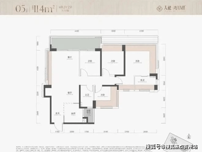 114㎡:2单元04(7.33万/㎡)>1单元04(6.98万/㎡),价差约3500元/m²;