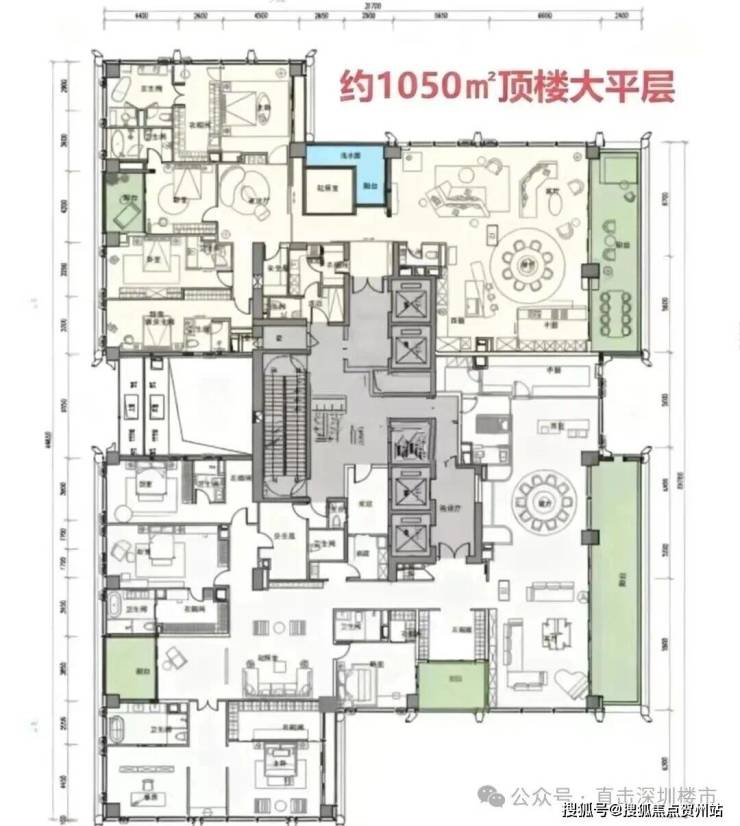 · 1050㎡顶奢大平层:位于顶楼的Penthouse,堪称深圳住宅的巅峰之作,堪比世界级豪宅。