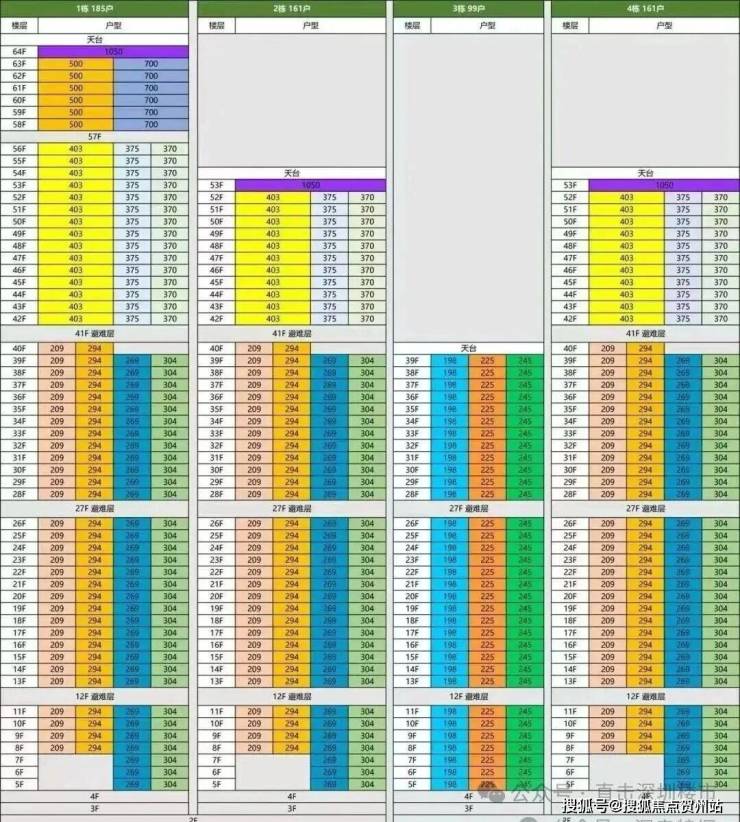 超高区(58层起,200米以上):约500-700㎡顶级大平层。