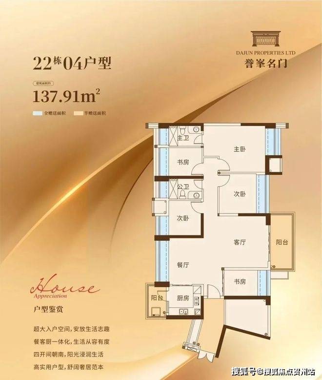 誉峯名门推出的全新精品住宅,将空间美学发挥到极致,每户均朝南设 计,确保全明采光。住户可尽享超大入户花园,自由打造归家的仪式感。户型设计通透舒适,高使用率让功能区布局更加清晰,满足每位家庭成员的不同兴趣爱好,营造专属的生活空间。