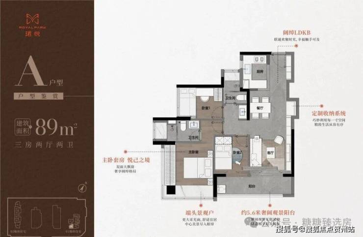 A户型:1栋1单06户型(东南向),格局方正,阳台宽阔,连接客厅和次卧,越过家居建材市场看向中粮大悦城写字楼,视野开阔